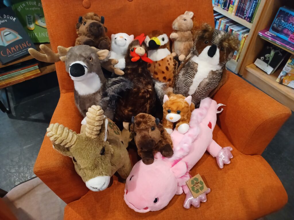 We have new plushies from The Petting Zoo! Owls, white-tailed deer, buffalo, rams, axolotls and more, encouraging a love for nature, and they are made from recycled water bottles! They are so, so soft!